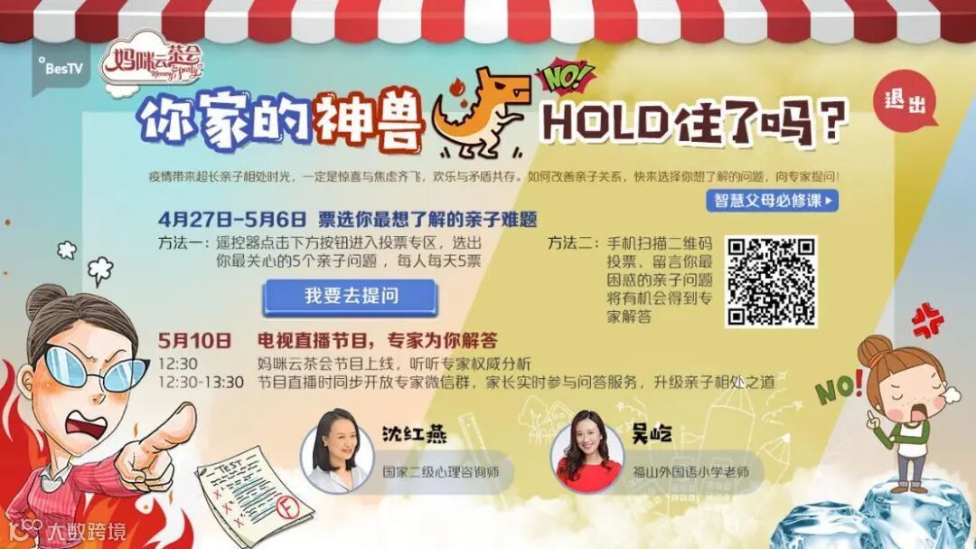 4月27日—5月6日 票选您最想了解的亲子难题,我们将选取前5道最受关注话题,邀请专家在节目中做详细解答