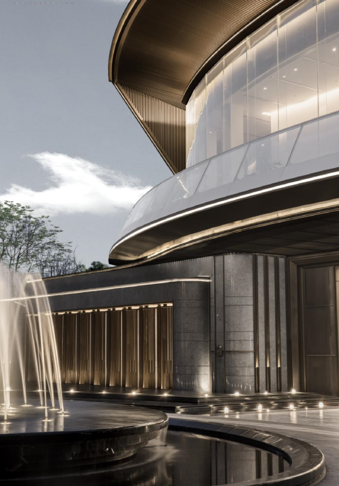 龙湖天府·云河颂示范区入口主打“奢华酒店化”,实壁柱金属印、吊顶金属格栅、电动门手敲铜及石材镶嵌等一系列工艺工法,让整个入口空间精致耐看。