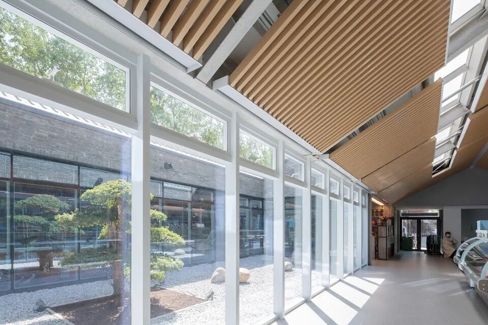 北京兴华东里邻里市集的大屋顶下,温暖的木质吊顶营造出一片温暖的氛围,为居民提供了具有停留感的场所。