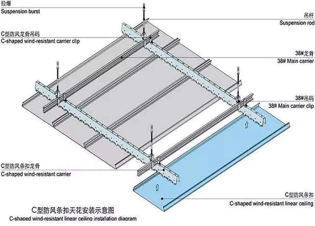 金属条板常用规格有:84宽C型、84宽R型、30/80/130/180宽B型、75C/150C/225宽C型、300宽C型、300宽弧形等,可做成密闭式吊顶,也可做成半开敞式吊顶,便于设备末端的安装;