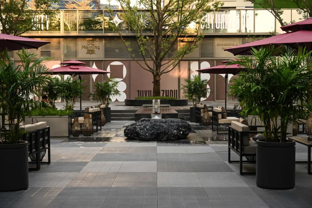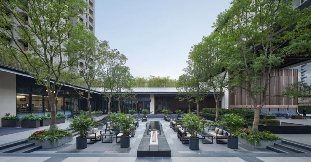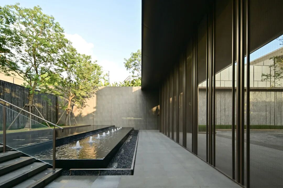 南苑与北苑通过景观庭院相连,巧妙地运用不同的设计手法描绘台阶和跌级水景,创造出丰富的层次感和动态美。