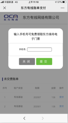 3、完成账单支付后,在跳出的活动弹窗内填写参与活动领取东方绿舟电子门票的手机号: