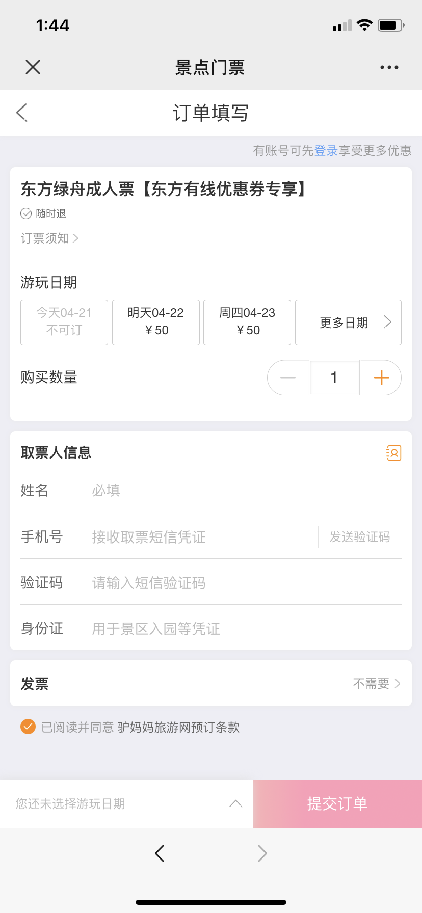 用户成功完成账单支付,注册驴妈妈旅游,48小时内将收到门票兑换券发放的短信通知。在获得短信提示后,打开短信链接进入活动页面,选择优惠券进行门票兑换,并填写取票信息。