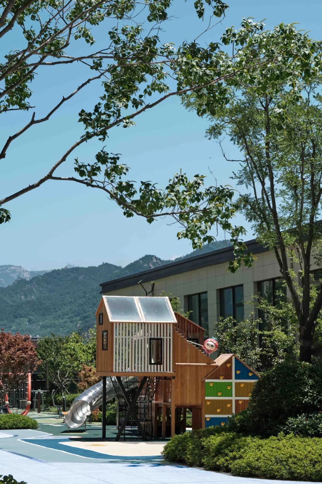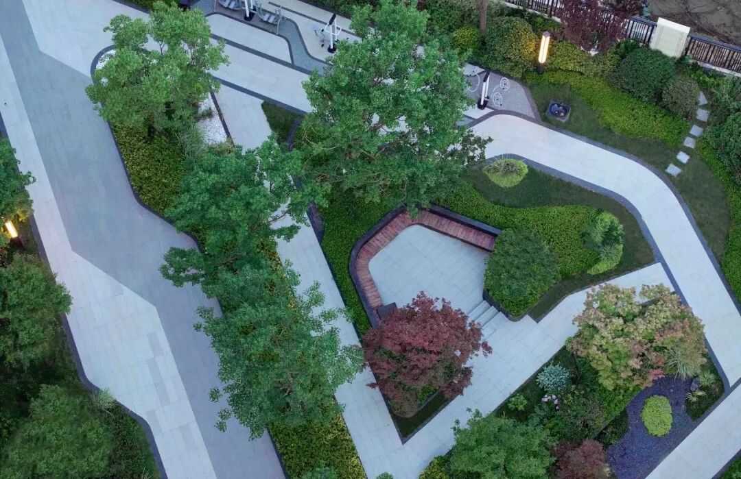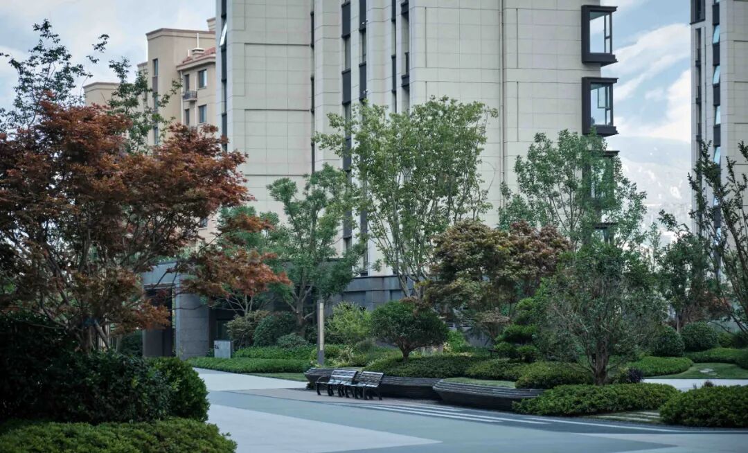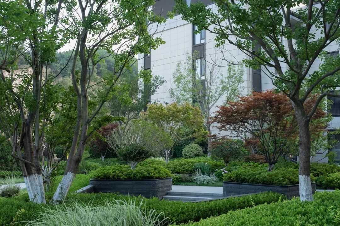一处绿色疗愈的康养场所,适用于多姿多彩的闲暇生活。无论是晨练交友,还是品茶下棋,亦或是谈笑交流,呼吸山间的新鲜空气,皆能传达一种静谧温润的自然感受。