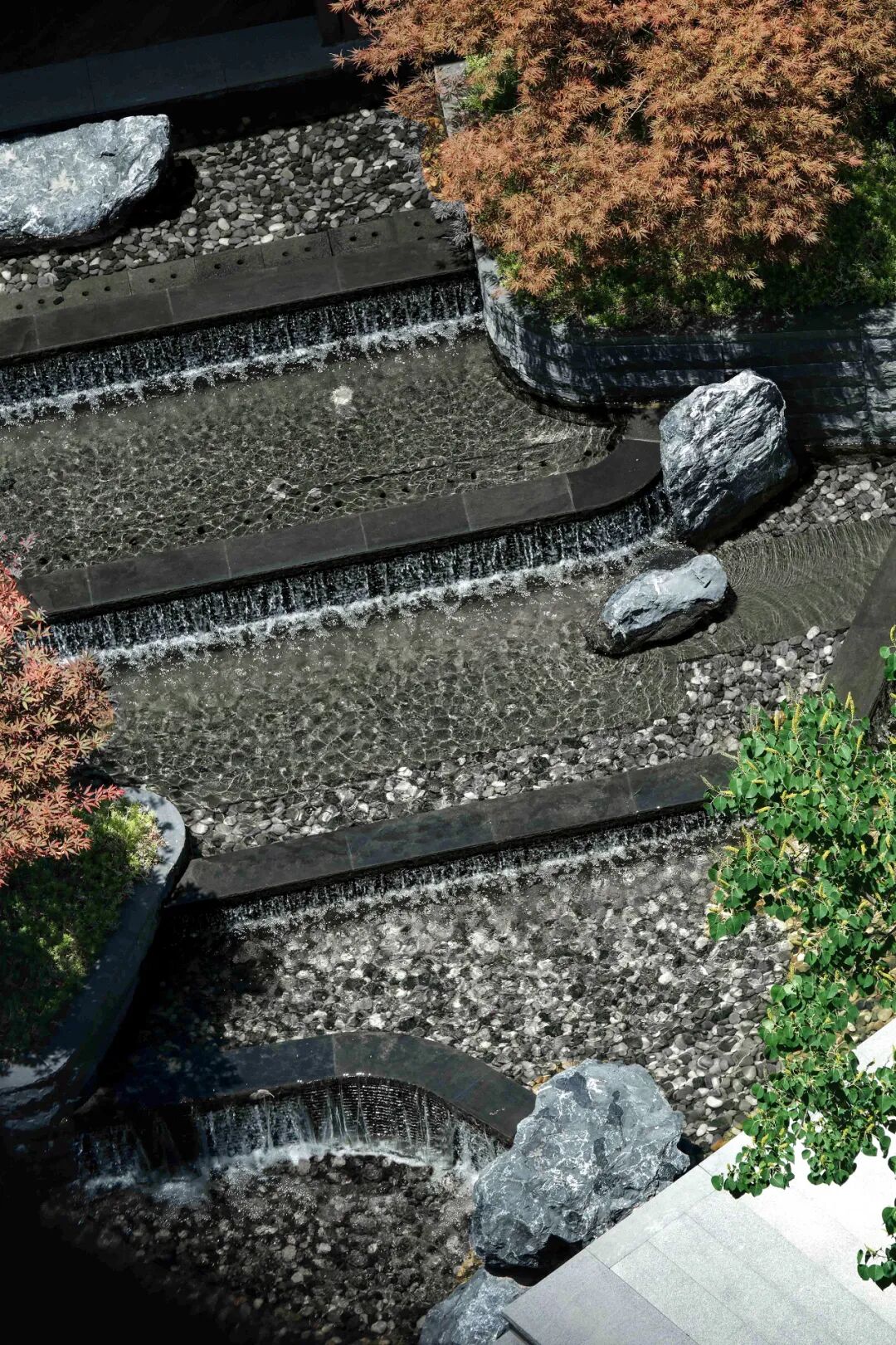 北涧山居以“富春山居图”为形,抽离出关于山的种种元素,提取连绵山峦、缭绕云雾、松间青石、潺潺溪涧、俨然屋舍,融于景观设计的一草一石,将“山”的秀丽再现居所,打造别致的山居风景。