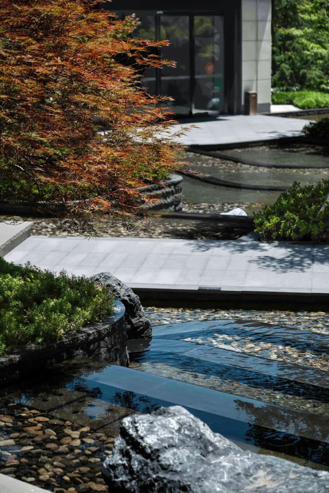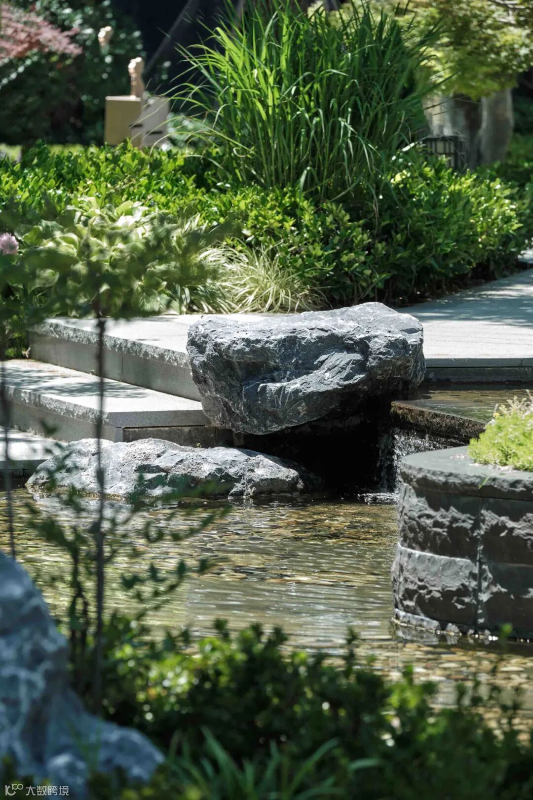 归家即是山石水景,潺潺流水沿石隙间流淌,晕染着山居生活的恬静与幽闲,能意会苏轼《行香子•过七里濑》中表达的一叶舟轻、双桨鸿惊的闲适心境。