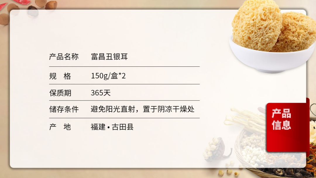 今天就为大家推荐“富昌丑银耳”,产自食用菌之都——中国福建古田,远离城市污染,大山中生长更绿色更营养。天然无污染的才能接近本真,才算是真正的吃食。150g一盒,分量足,易存储,置于阴凉干燥处即可。