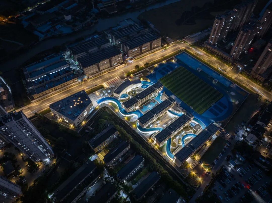 而我们也将从中受益,不过分利用隐喻而让建筑成为简单乏味的符号,只是平行于地面画了一轮弧线,顺应自然景观的走势曲折延展,以此连接水平和竖向的三重维度,在建筑空间中营造出虚与实,让理性与感性交织出和谐的旋律,由此呈现出人在建筑与自然之中生活、学习、成长的景象。