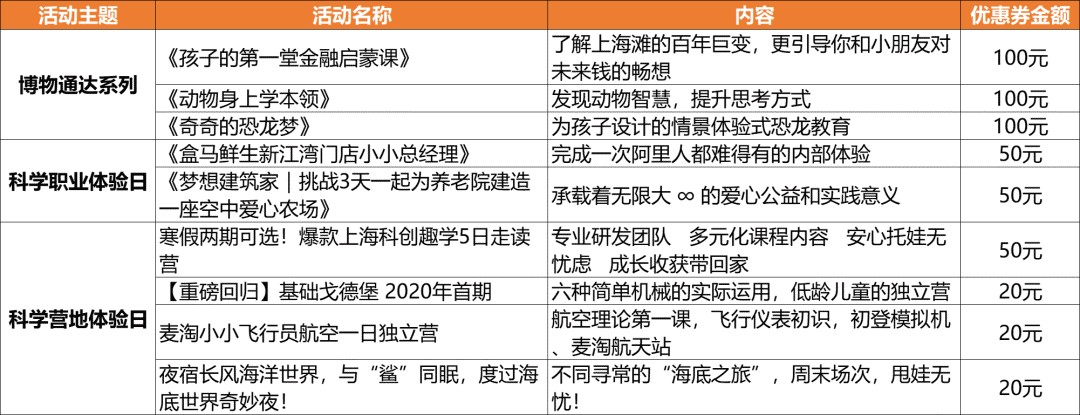 年卡会员专属优惠劵包,月月发送(含博物通达系列、科学明星体验营、科学明星职业体验日)