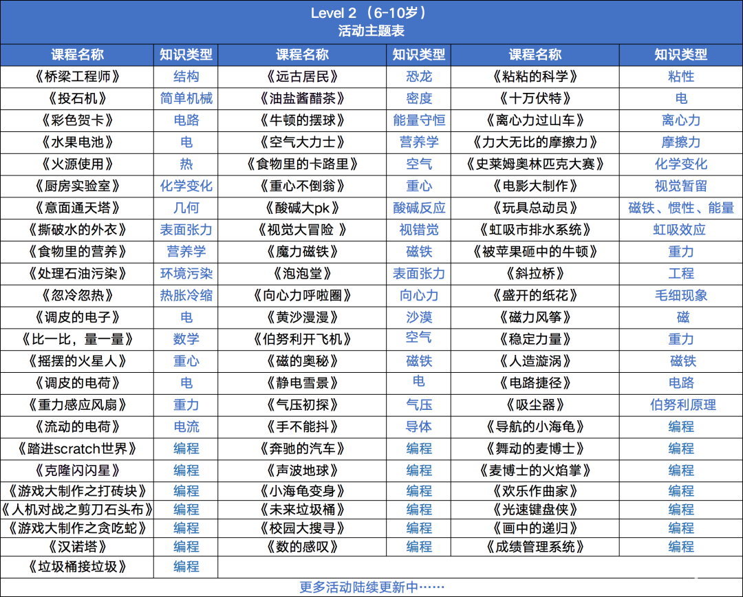 物理、化学、生物、自然、天文、地理、人文……全年超多STEM课程主题,覆盖多个学科,让小朋友们的童年学习启蒙全面发展!