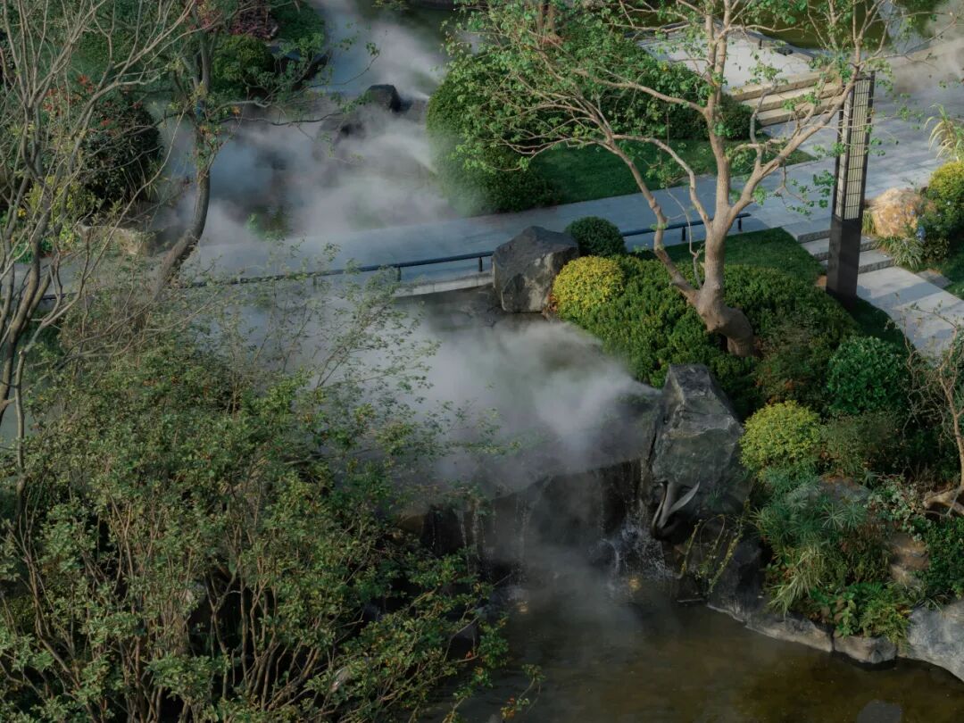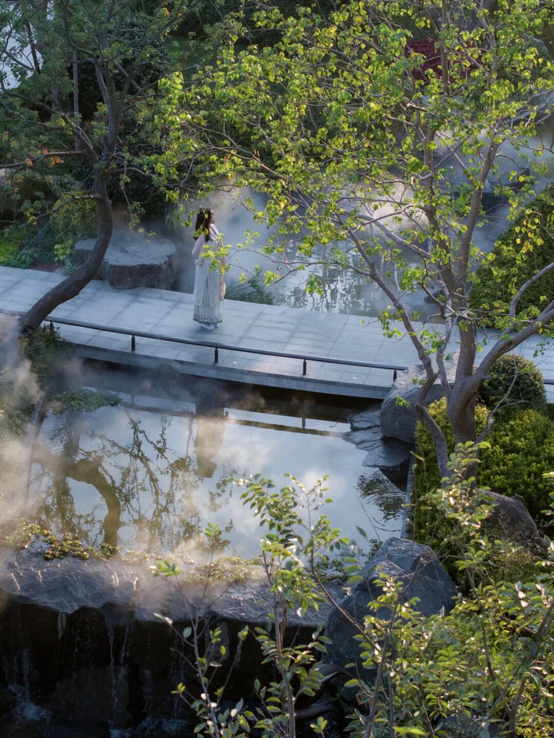 东方园林的奇妙之处在于其与人的亲密互动,仿佛置身于真实的山林中。画境内山石参差有致,涧水宽溪石隙间舞动,激荡出自然的山水清音。沟涧交错,水流跌宕,宛如一曲悠扬的山水旋律,谱写着自然的乐章。