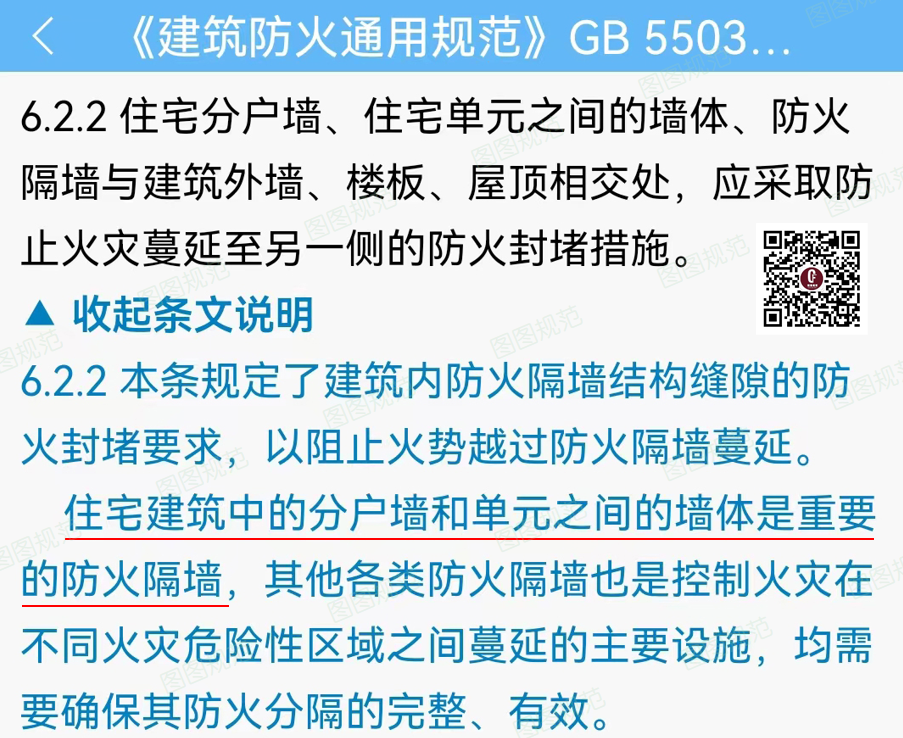 从条文说明中可以看到,住宅分户墙、住宅单元之间的墙体为防火隔墙。
