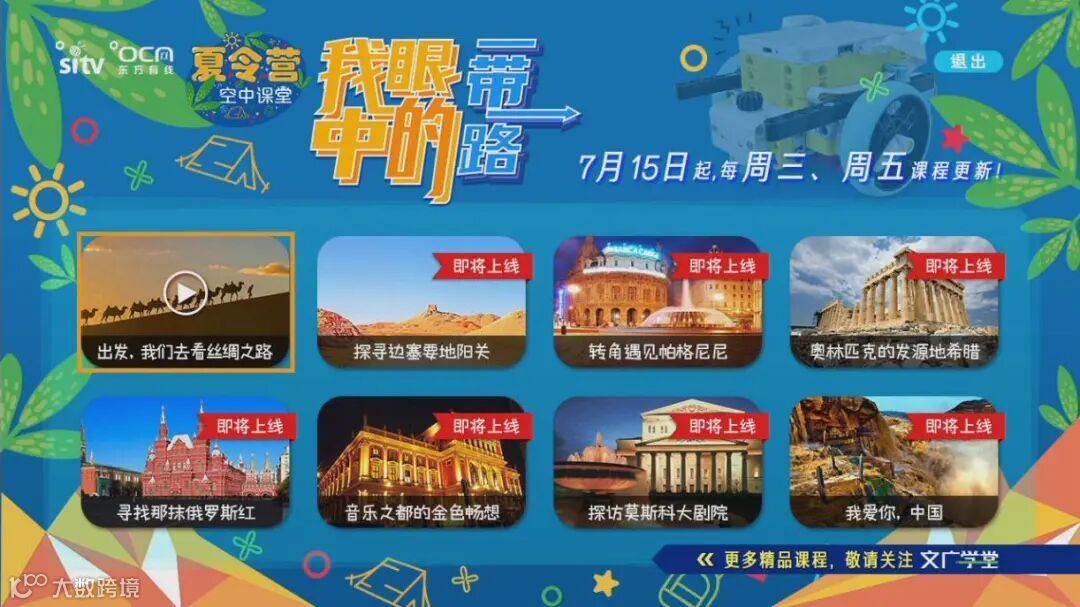 从7月15日开始,上海“空中课堂”推出了暑期夏令营免费公益活动,通过STEAM(艺术人文+人工智能)线上课程的方式,让学生在专业老师的带领下体验“一带一路”沿途风光和独特音乐艺术,同时科普人工智能基础知识。
