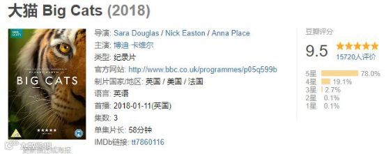 作为纪录片制作的‘扛把子’,BBC出品必属精品,《大猫》也不例外,一开播便创下了豆瓣9.5的高分!