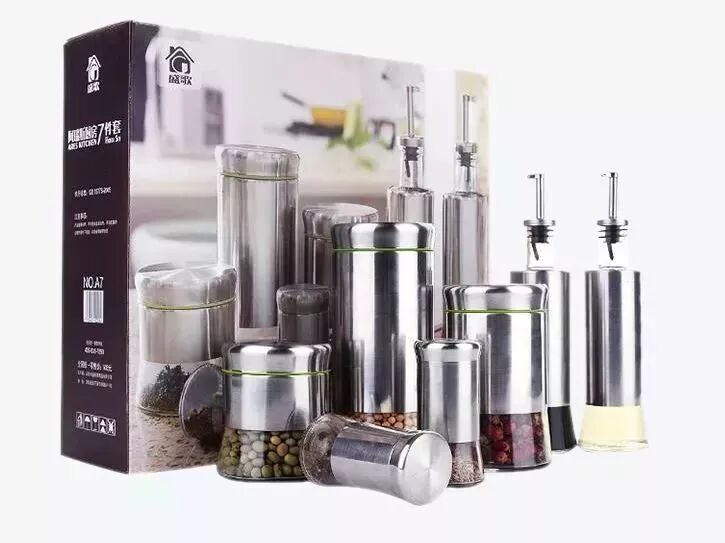 阿瑞斯厨房七件套采用健康环保的无铅玻璃手工制作完成,选用食品级PC瓶盖,外包合金层表面,清洁方便,不易破损,耐腐蚀性好!