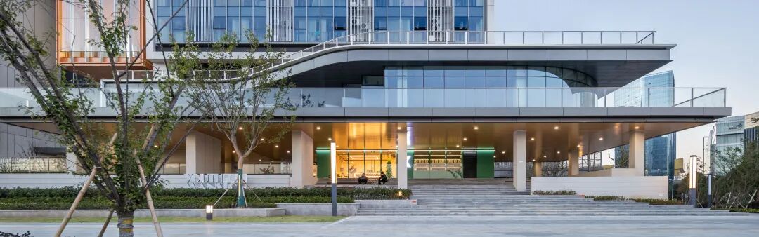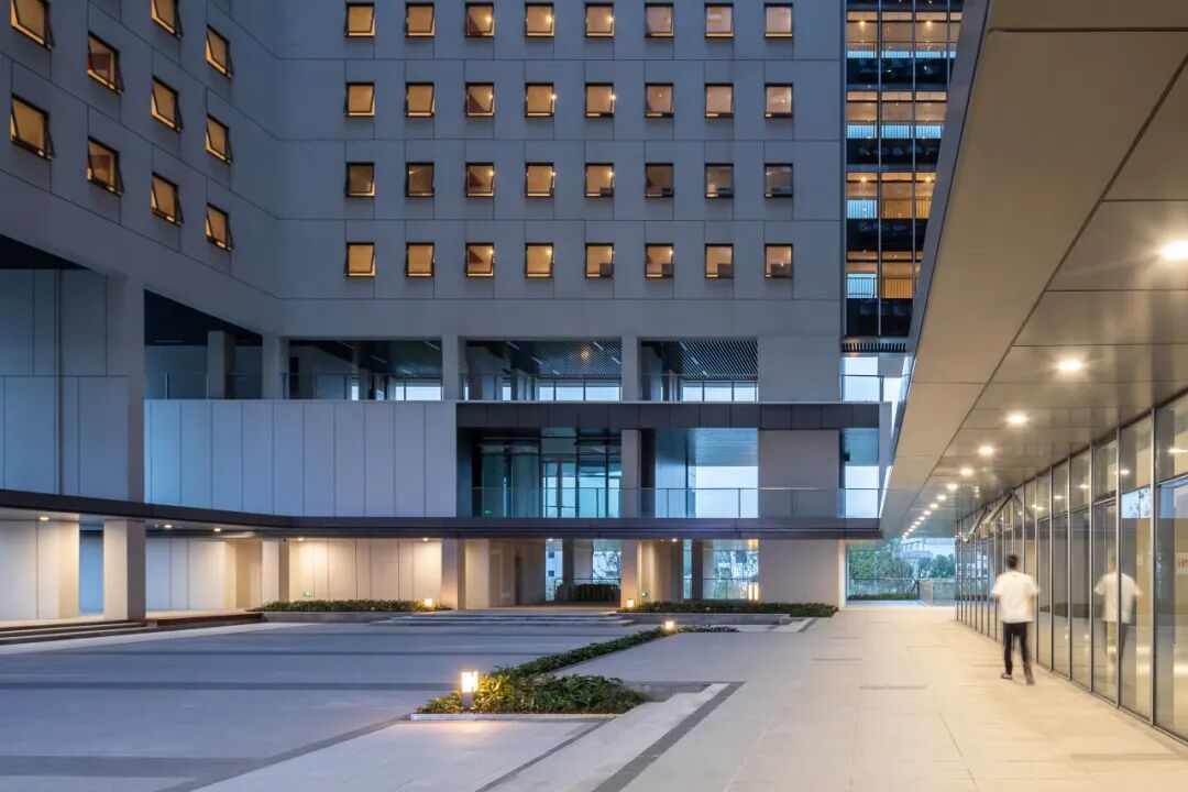 在城市界面,建筑以一种活力积极的姿态面向城市。精致错落的建筑形体犹如跳动的音符,像青年一样向北仑展现自己的热情与活力。