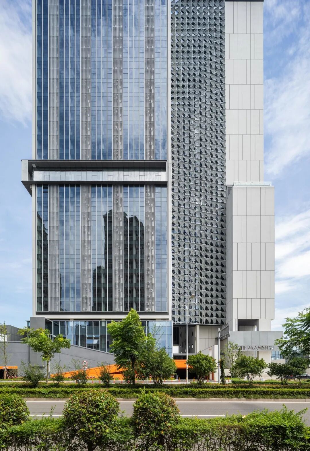 建筑主入口面向城市打开,使用者经由一条两层通高的架空廊道到达公寓门厅及其他功能空间。在满足实用性的同时带来满满仪式感。