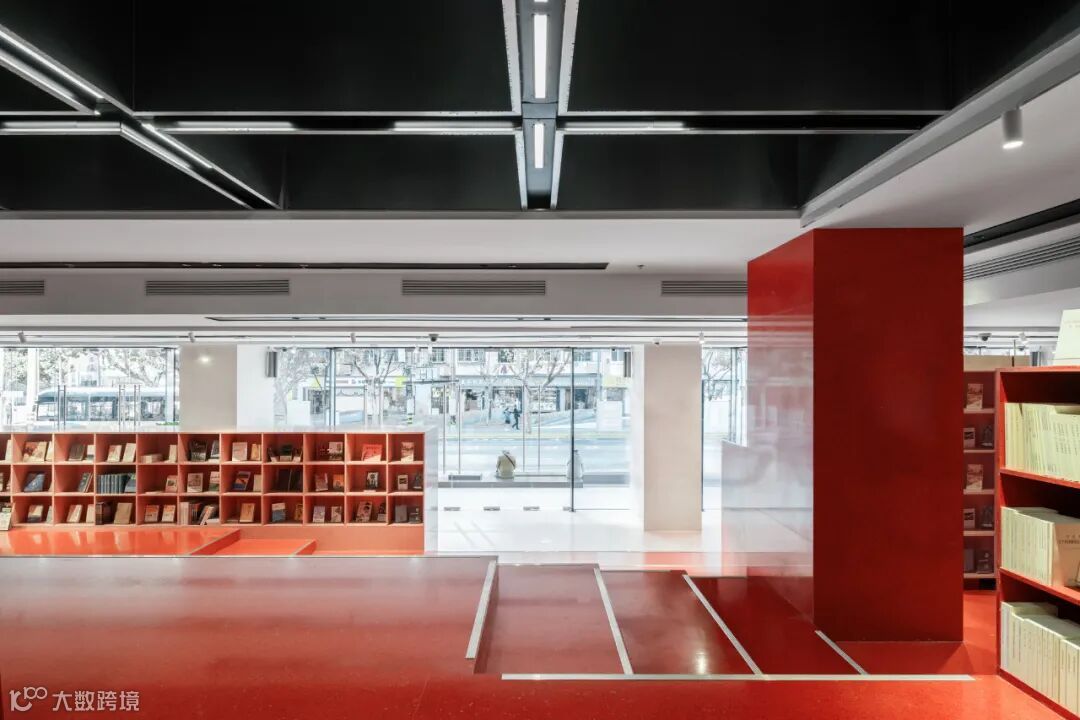 风景也是室内设计的元素。书城立面的落地窗不仅是为了采光,而且能将书城的内部活动展示出来,它们更是舞台。马路上往窗子里看书城内的人仿佛是看电影一般的风景,而窗子里的人看着马路上的人,亦是在看戏剧一般的风景。
