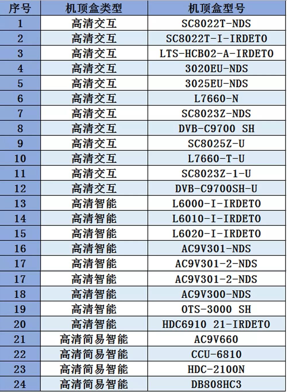注意:目前部分机顶盒可以收看此购物频道,具体清单如下。