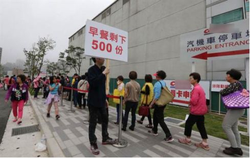 8月29日,该超市开业第三天,恰逢上海下大雨,但是,赶往该超市的顾客仍然络绎不绝。从距离500m告示牌到距离300m告示牌,现场车辆水泄不通,市民采购热情不减。