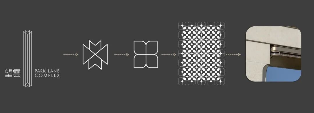 庭院中的景墙壁灯、艺术花钵、户外家具装饰线条等,皆呼应建筑的1/4内凹尖拱及弧形设计语言;室内细节则突出在门把手、背景板肌理、地砖花纹的精挑细选之中,同时通过花纹logo的统一运用打造了「望雲」独有的专属表情。