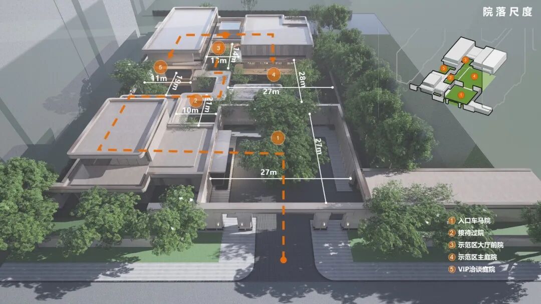 东方哲学的隐,不仅在边界不留痕的隐,更在于空间布局的隐。「望雲」从人与自然、环境与空间的有机感出发,探寻属于都市高端圈层的舒适尺度感。示范区空间布局由传统庭院空间演变而来,多重院落相互嵌套联系,形成具有传统空间趣味的庭院组织形式。
