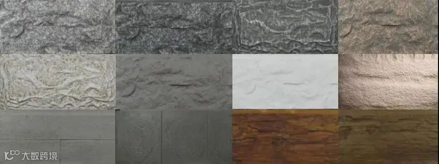 所有文化石的造型PU石都具备,比如我们传统概念中的长城石、瓦板、流水石等。除此之外还有较具特色的混凝土水、泥板、蘑菇石。
