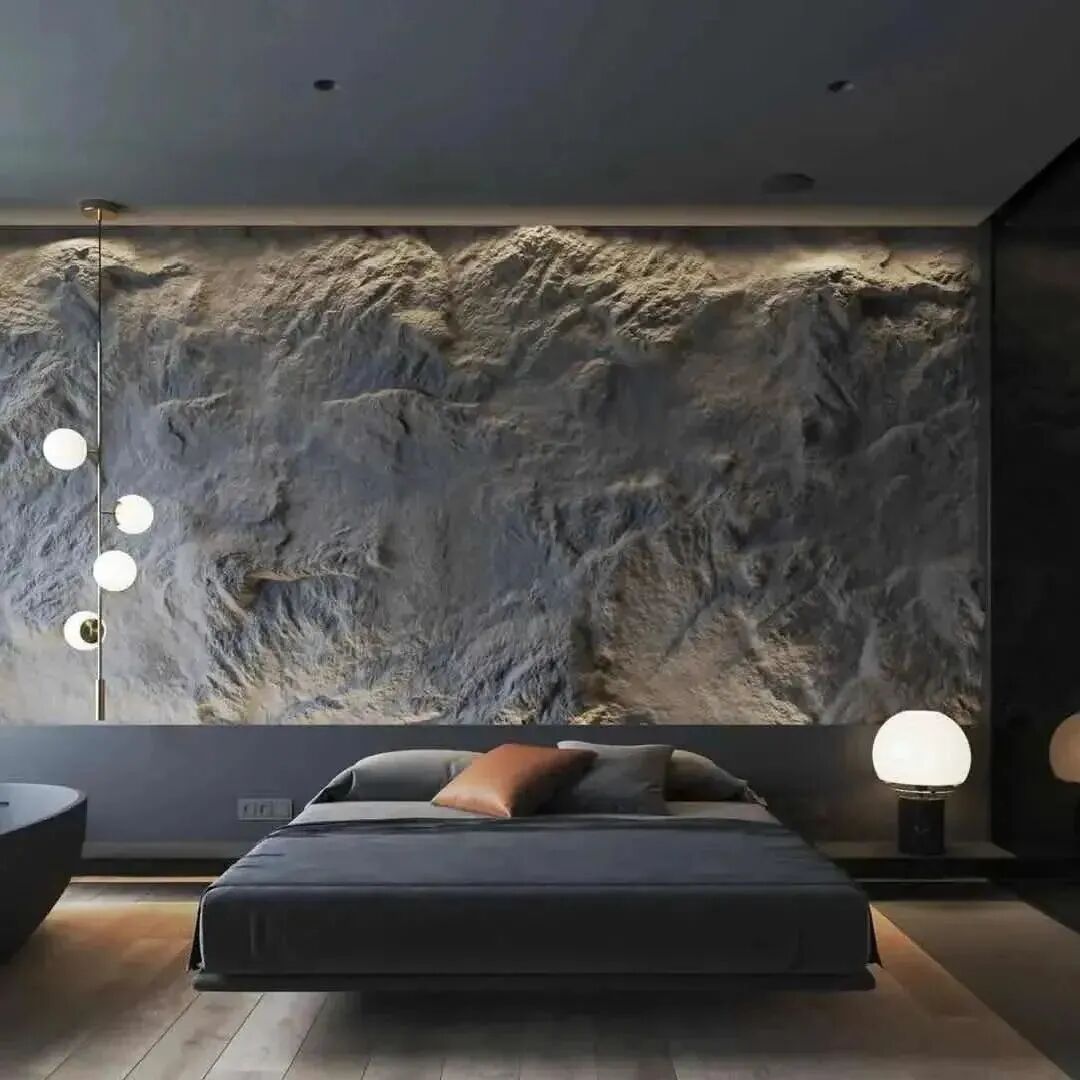 在作为床头护墙的功用上,PU石展现的不仅仅是突出的表现力,还有包容的创意改造力。
