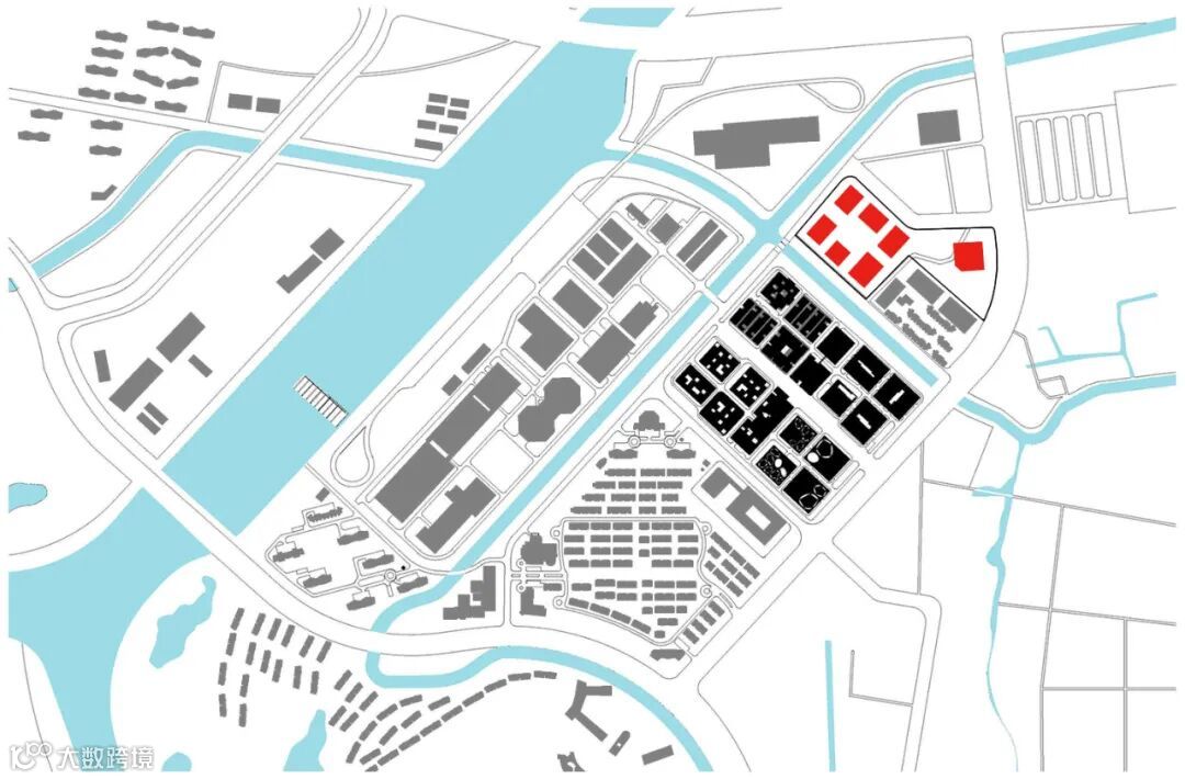 横河港南岸的现有园区是一个均质的小街坊集合。20个50mX50m的小街坊均匀分布在园区内。小体量的建筑单体为当时处于初创阶段的企业提供了适合的生长空间。