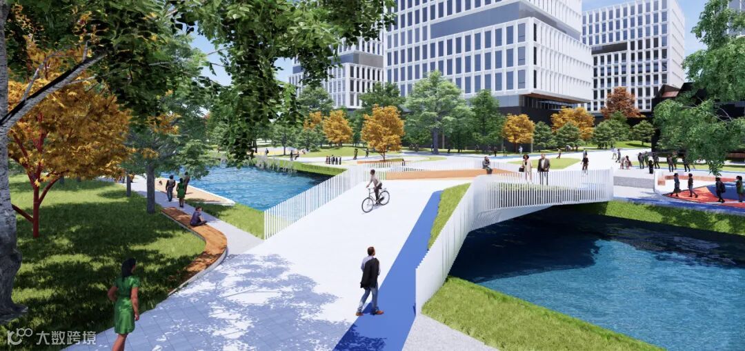 新的用地与现有园区隔河相望,由西南角的三角形用地和东北角的矩形用地相连而成。作为对现有园区的补充和拓展,新园区将相互合作又彼此竞争的个体聚集在一起,这对园区的系统结构提出了挑战。