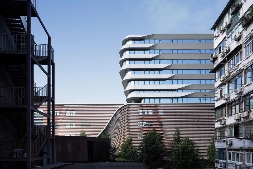 设计通过材料性能化计算、形态优化的冲孔铝板外表皮,为室内的医疗空间提供有效的降噪处理。