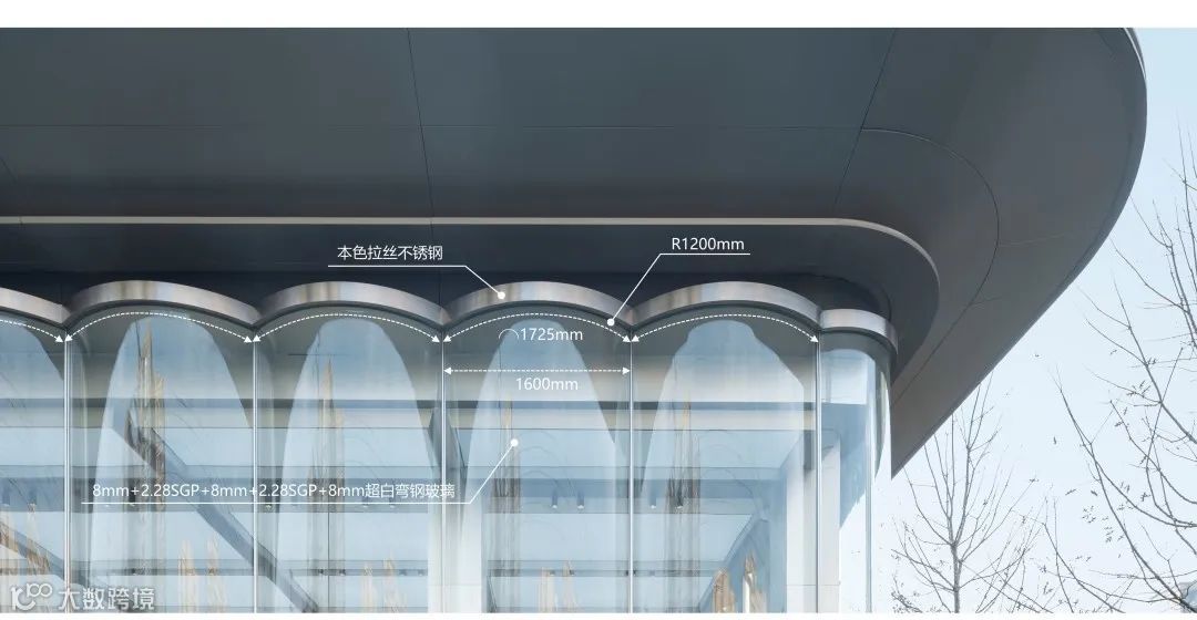 独创的幕墙系统能适应单元板块多角度、多尺寸变化的要求,确保建成效果与模拟效果高度一致,并保证幕墙性能。而采用三维组框+平板玻璃冷弯设计的玻璃单元,以打破国内最大单元玻璃翘曲量的86mm让设计得以实现。