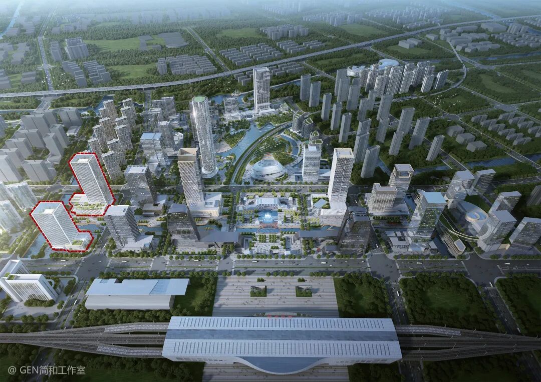 上位规划要求高铁新城核心区打造为具有区域统领作用的地标性超高层建筑群。既有国际性、时代性,也要体现苏州场所文化特色。本项目是核心区最后一块开发建设的商办地块,开发区政府要求设计同时具备未来科技型商务办公建筑的外观及功能属性。