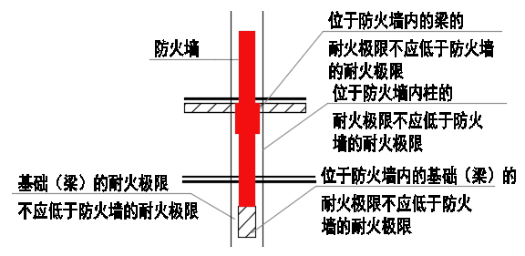 6.1.1 防火墙应直接设置在建筑的基础或框架、梁等承重结构上,框架、梁等承重结构的耐火极限不应低于防火墙的耐火极限。