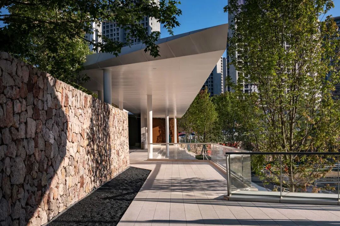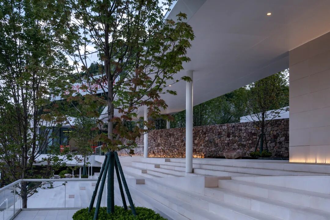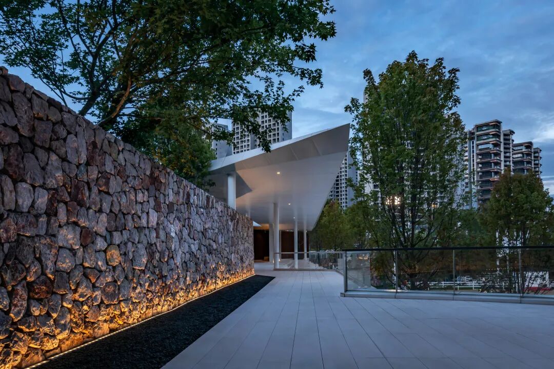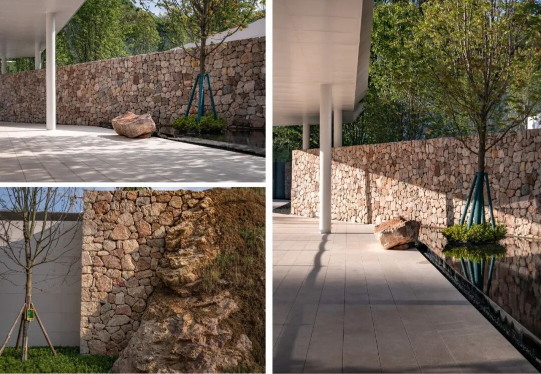 从接待中心进入马术俱乐部,以开放和高效的空间设计,呈现开放、轻松的氛围。通过路径的转换,以原生感的景墙引导进入空间的情绪,唤起人们对于大自然原始的敬畏和向往。