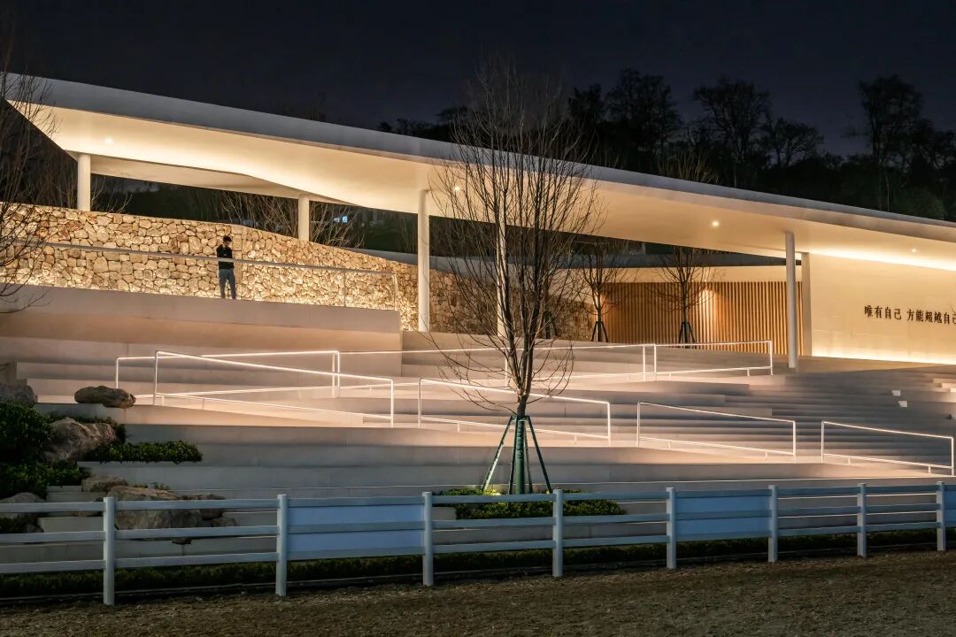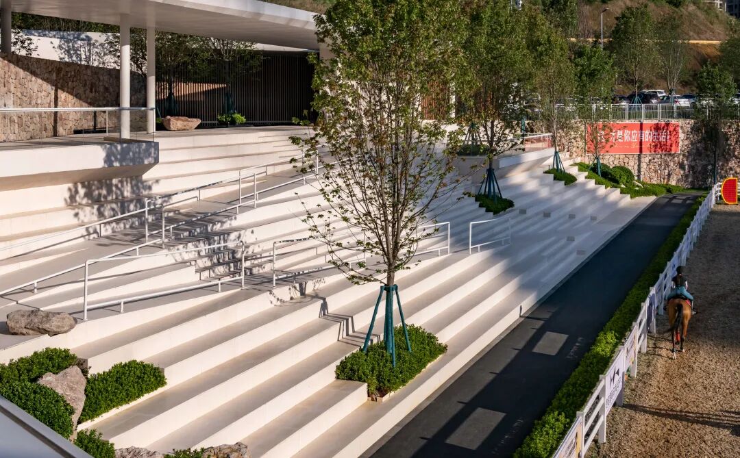 一条宽阔的露台,将接待中心与马术训练的主场地连接起来。场地中原有的地形高低错落,通过设置阶梯看台,在消除高差的同时,游客可以在不同的高度俯瞰马术训练和比赛,为观赛群众提供了马术训练或比赛的最佳观赏角度。