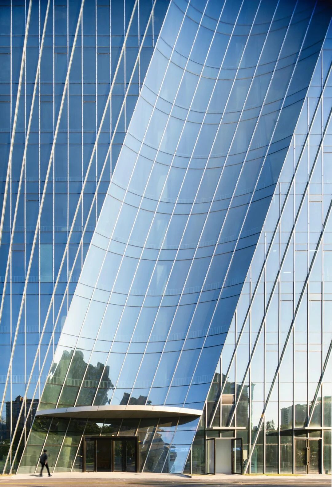 We aim to embody the sense of power generated by the city's forward momentum and transform it into the architectural language: massive, powerful lines sweep from the city to the building, endowing the structure with a tremendous sense of strength. The reflective surfaces add a futuristic aspect to its appearance.