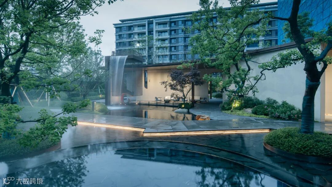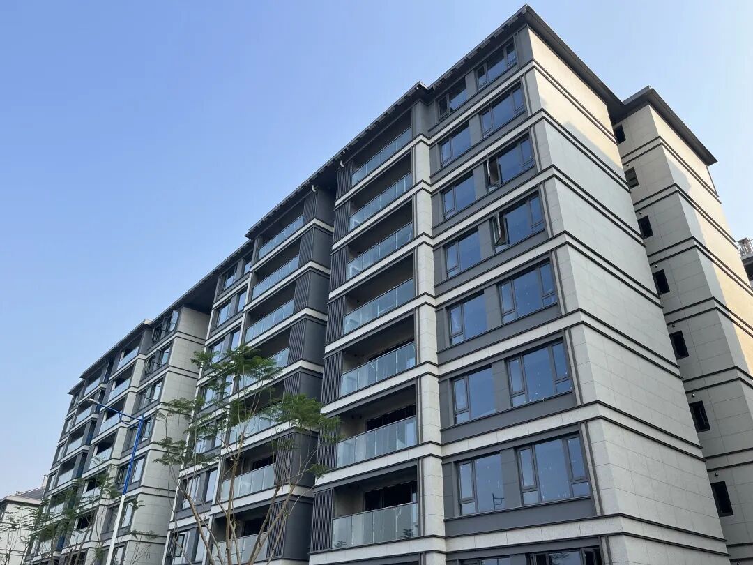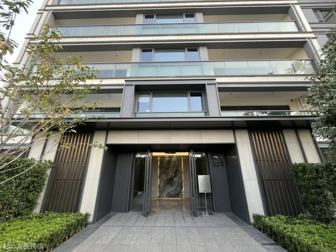 外立面颜值也做了迭代升级。大面积“米白色”搭配“银灰色”,呈现出现代海派范儿的外立面。金色的金属边,建筑顶部弧形塔冠装饰,远远望去就是一副特色美学画面。