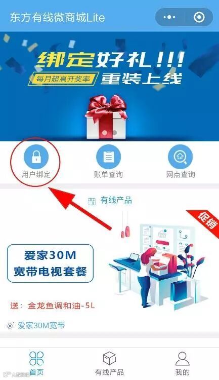 2.在商城首页,点击“用户绑定”,进入绑定页面。