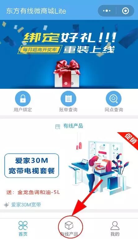 2.在商城首页下方,点击有线产品,即可看到套餐分类列表。