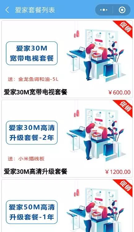 3.点击任一列表,如爱家套餐,即可看到产品图片。