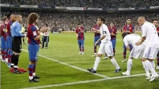 阿莫尔的这番话在此前已获得过验证:今年夏天,两支球队在西班牙超级杯上相遇,皇马当时刚刚加冕欧洲超级杯冠军,但巴塞罗那同样没有向对手行“列队礼”。而在2008年,皇马提前获得联赛冠军,巴塞罗那则遵照传统,为“死敌”列队欢迎。