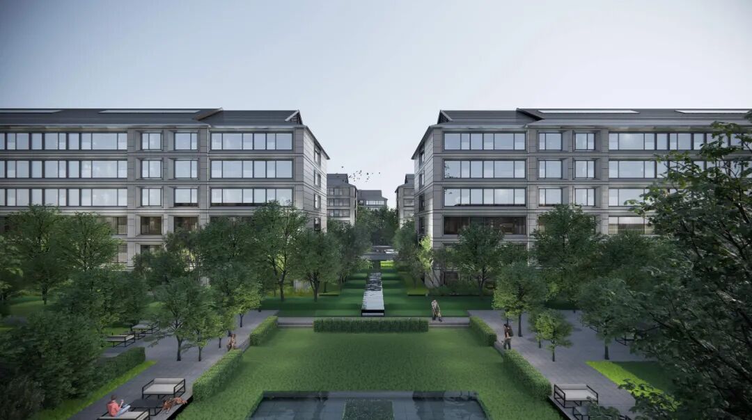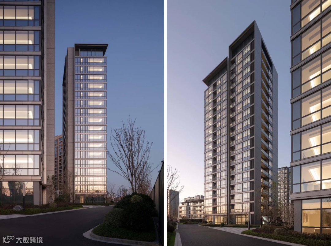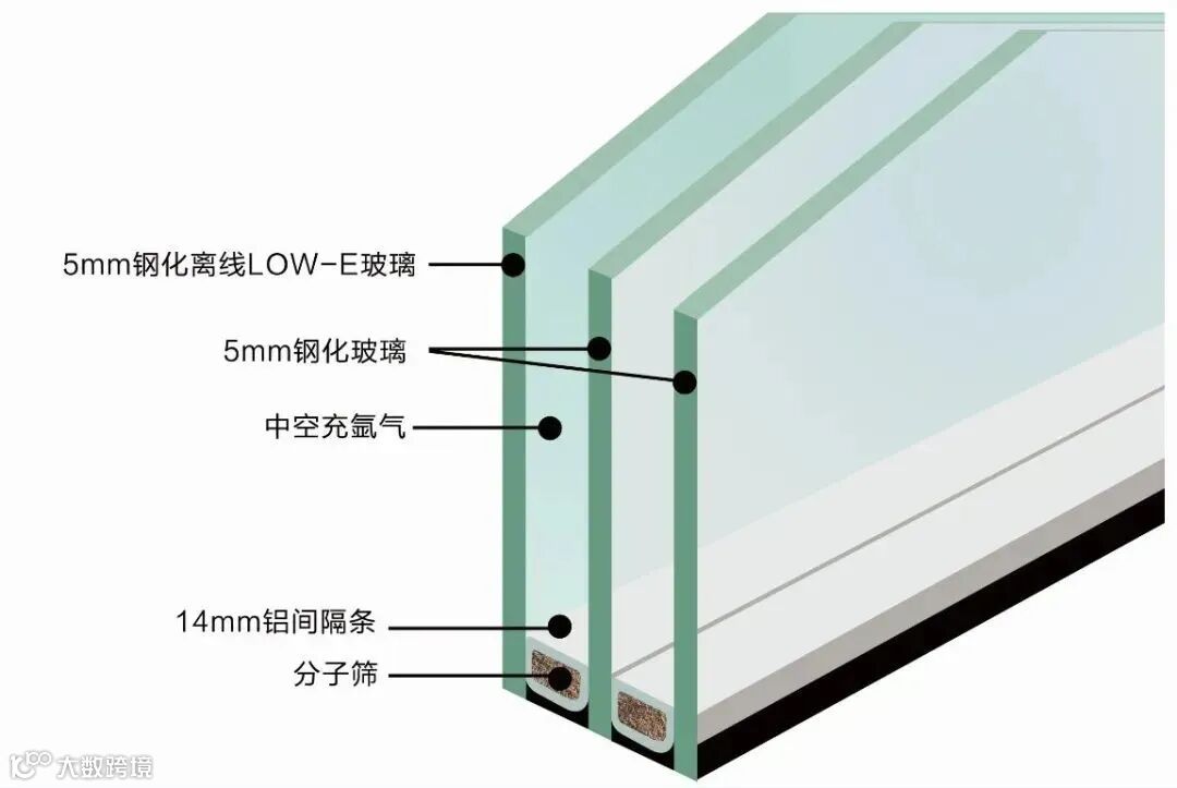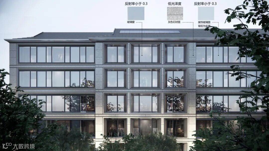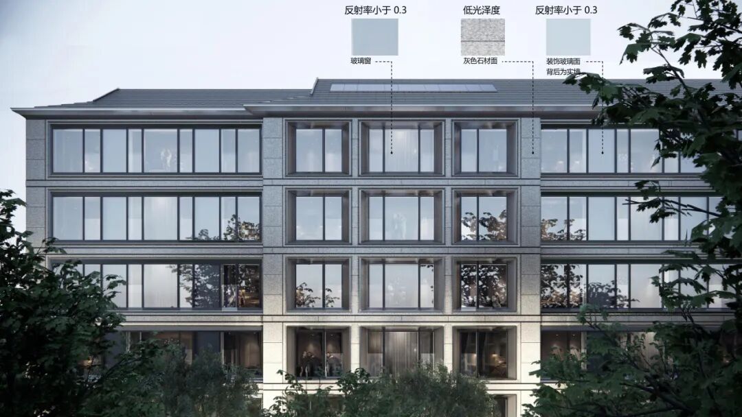 还有的使用三玻双腔中空玻璃,比如融创北京学府壹号院项目,整体外立面采用了大面积玻璃+石材+灰瓦,采用了超低能耗的节能措施。
