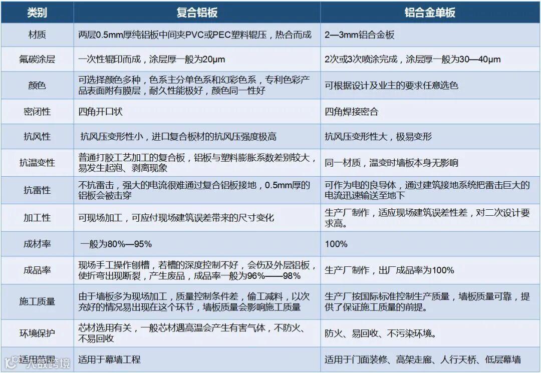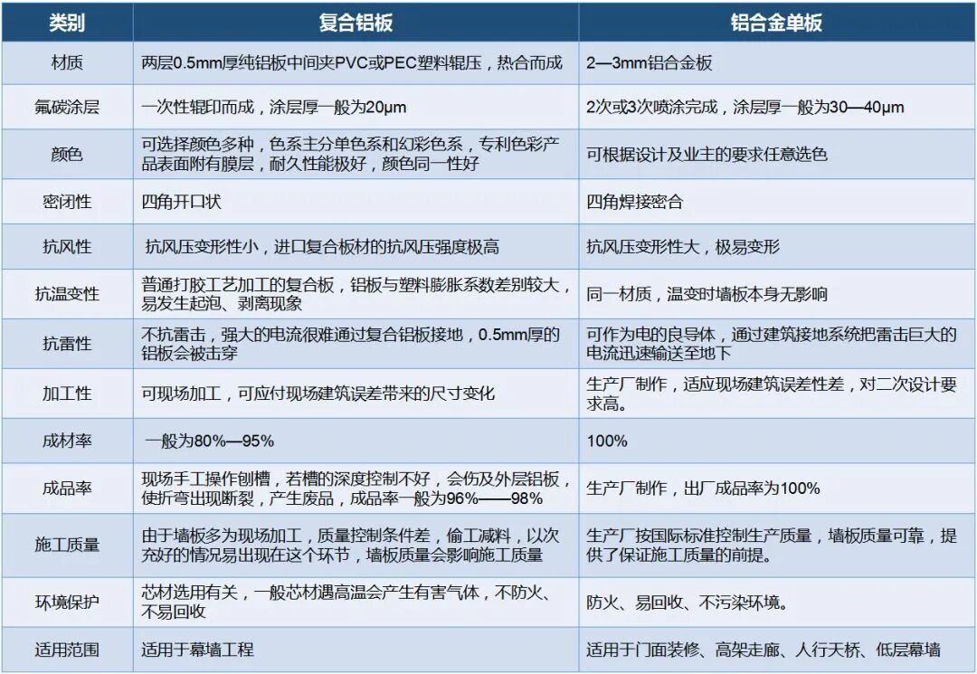 铝板的种类非常多,建筑上使用的铝板包括单层铝板、复合铝板等。铝板幕墙外观形状可以多样化,并能与玻璃幕墙材料、石材幕墙材料结合。其自重轻,仅为大理石的五分之一,是玻璃幕墙的三分之一,大幅度减少了建筑结构和基础的负荷,而且维护成本低,性能的价格比高。