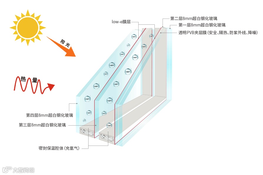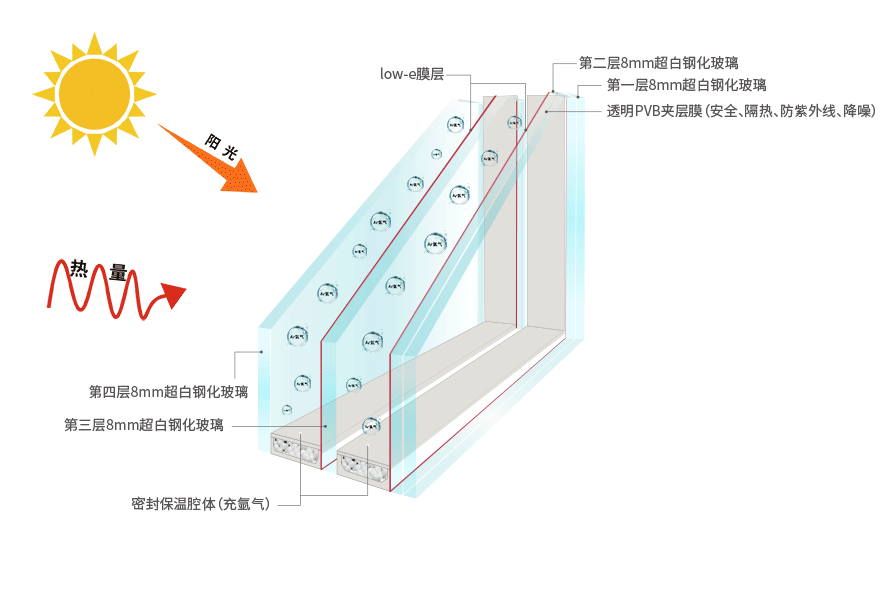 中鹰·黑森林 四层双腔Low-E玻璃原理图