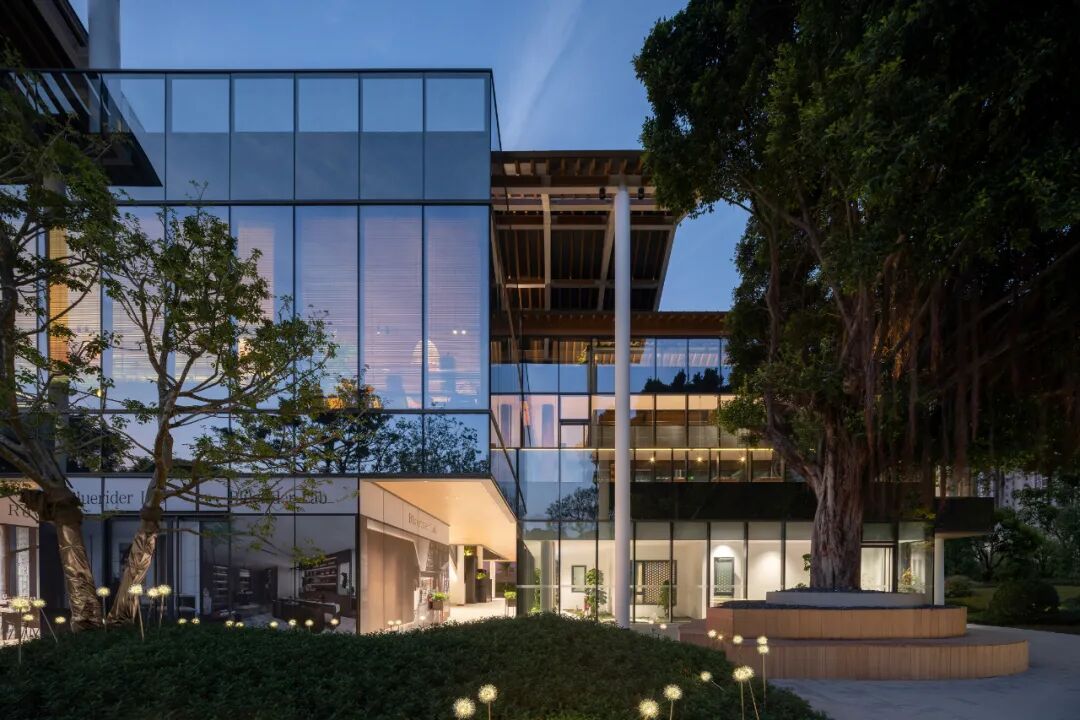 首层的咖啡厅与原址保留的榕树之间,留出了很好的前庭空间,营造静谧、舒适、自然之感。