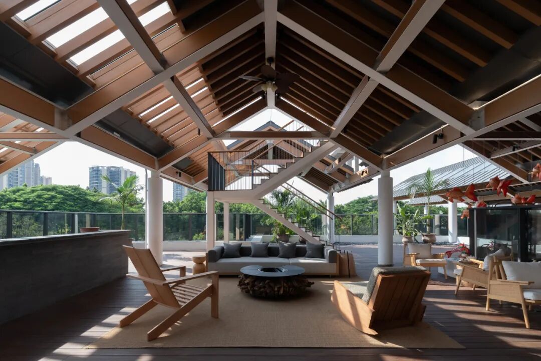 此外,屋顶结构体系借鉴了岭南传统木屋架,采用现代建筑手法重构传统建筑元素,能很好地打破空间界限,契合当地地域特征。