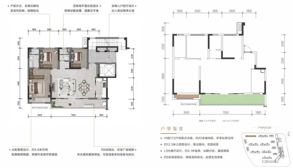 建面仅约110㎡的户型,但同样拥有约101%的得房率,赠送面积也高达22.5㎡。