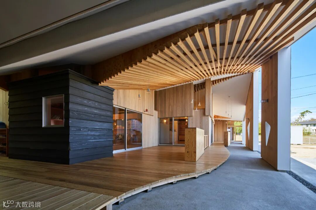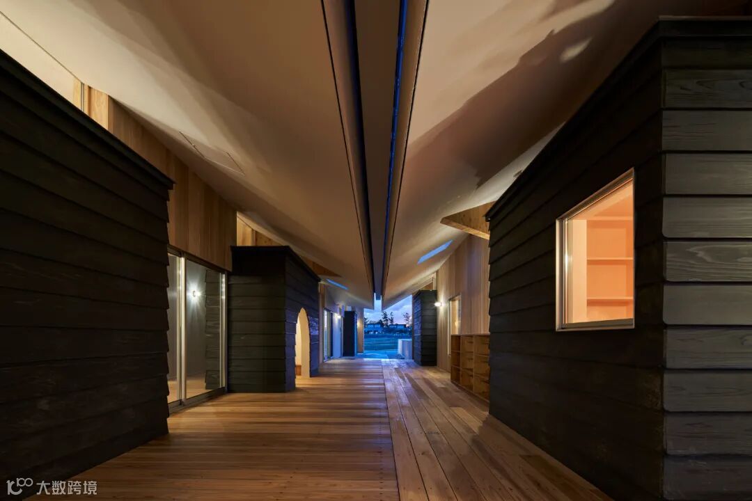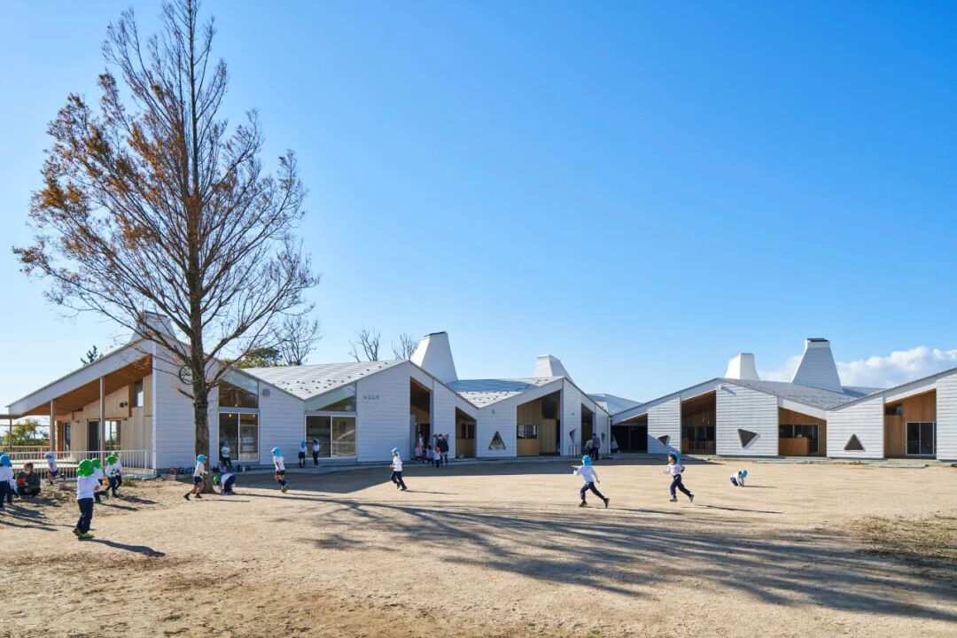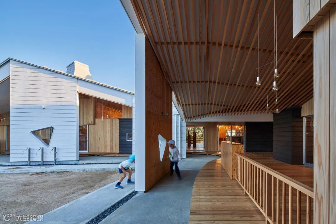 蜿蜒狭窄的街道是村庄的特色,被引入幼儿园,成为一直延伸到建筑后部的外部走廊,这样孩子们的笑脸就仿佛置身于村庄之中。建筑前方是儿童保育支持办公室和露台广场,将用于举办当地农贸市场和食品卡车活动,将社区活动与幼儿园活动结合起来。