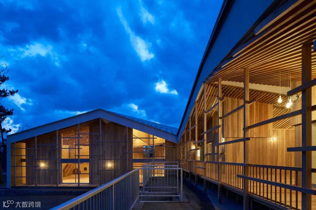 Under the site conditions, large timbers were prohibited from being transported, and so wooden trusses were built on the field by combining small timbers to create large nursery spaces. Trusses with apexes facing up and down are combined to create a series of truss roofs. Moving the intersection of the trusses from the top of the partition walls allows for a more expressive environment in each of the rooms, while an open space above the partition gives them a sense of connection.